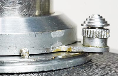 「指を外すとストッパが外周を擦る(というか削る)」ので動かなくなる(う~ん)