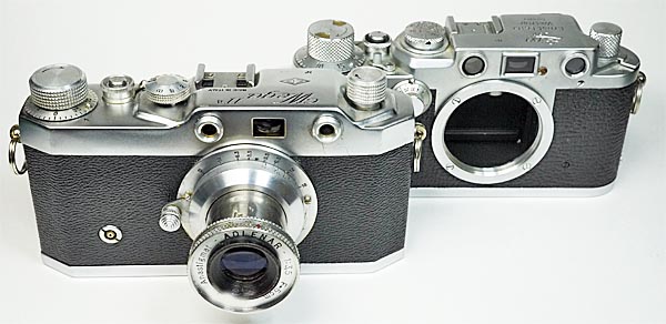 バルナックライカコピー機なので本家LeitzのIIIfと並べてみた。